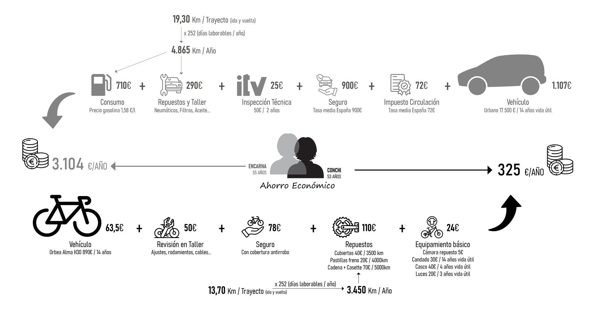 5.e – El ahorro económico derivado del uso de la bici o el transporte público como alternativa al coche.